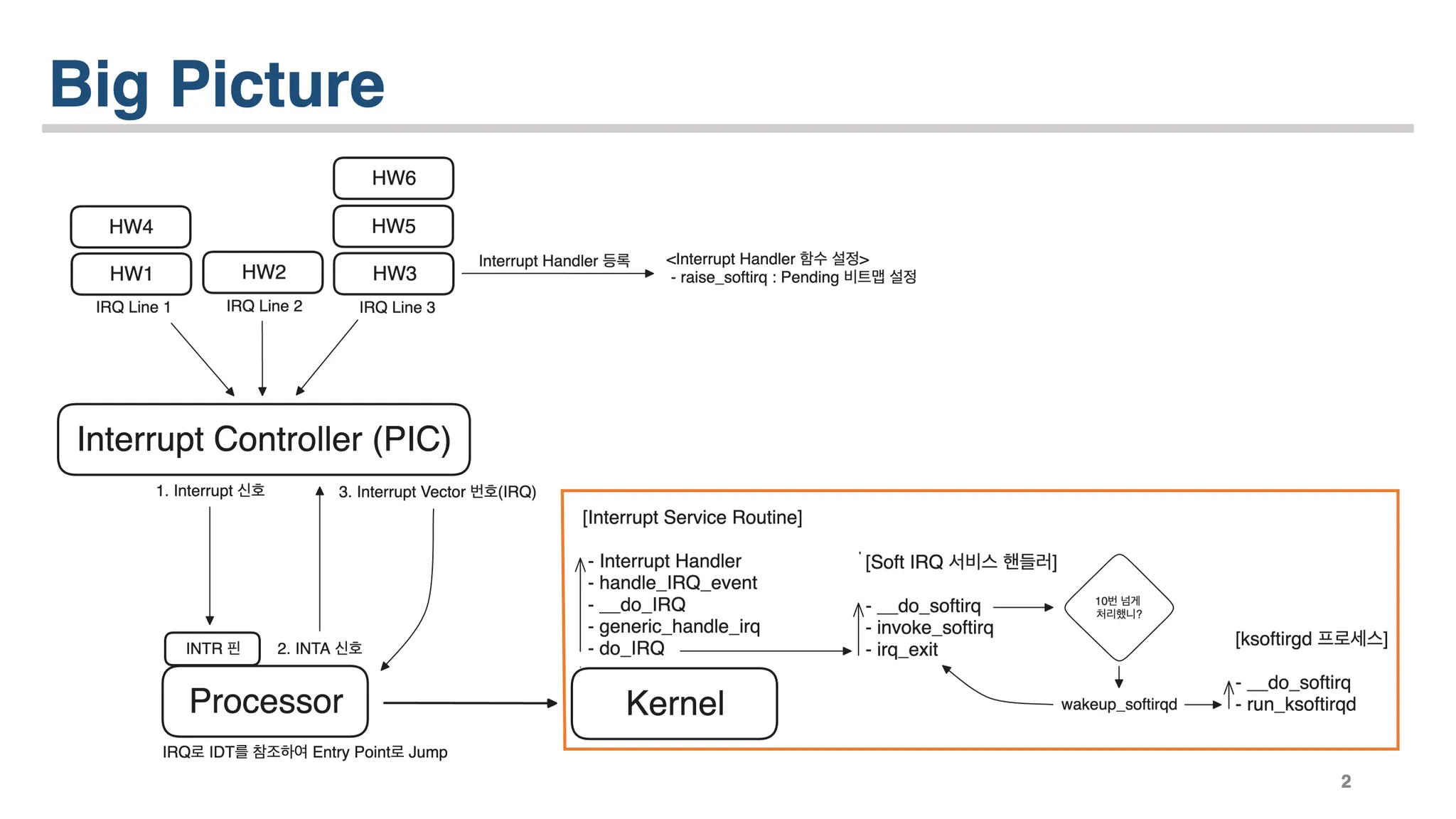 저희는 책 Linux Kernel Development에서 15개 챕터를 나눠 각자 공부한 후, 발표 및 리뷰하는 방식으로 세미나를 진행했습니다. 저는 Interrupt 파트를 맡아서 깊게 공부했는데, 덕분에 Interrupt가 어떤 식으로 동작하는지와 Bottom Half 구현체 등에 대해서 실제 Linux Kernel 코드와 함께 학습할 수 있었습니다.