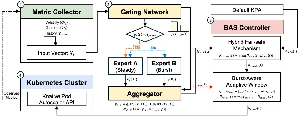 석사 과정을 시작하며 막연하게 세웠던 목표는 ‘1년 차가 끝날 무렵, 결과와 상관없이 1저자 논문을 작성해 해외 학회에 투고하는 것’이었습니다. 다행히 이번 겨울에 그 목표를 달성하게 되어 기쁩니다. 논문 제목은 “B-MoA: A Robust and Proactive Serverless Autoscaling System for Bursty Workloads using Mixture-of-Experts”입니다.