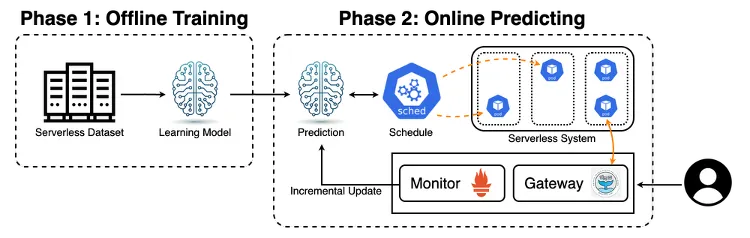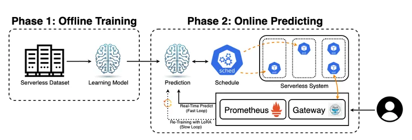 MoE(Mixture-of-Experts) 구조를 활용하여 서버리스 워크로드 예측을 한다는 큰 틀 안에서 구체적인 시스템 아키텍처를 다듬어 나갔습니다. 시스템 학회 특성상 단순한 모델 제안을 넘어 실질적인 시스템 기여가 필수적이었습니다. 이를 위해 예측 실패 시에도 시스템이 안정적으로 동작하도록 돕는 메커니즘을 도입했습니다. 박사과정 선배님들의 날카로운 피드백 덕분에, 추상적이었던 아이디어가 구체적인 수식과 논리를 갖춘 시스템 아키텍처로 발전할 수 있었습니다.