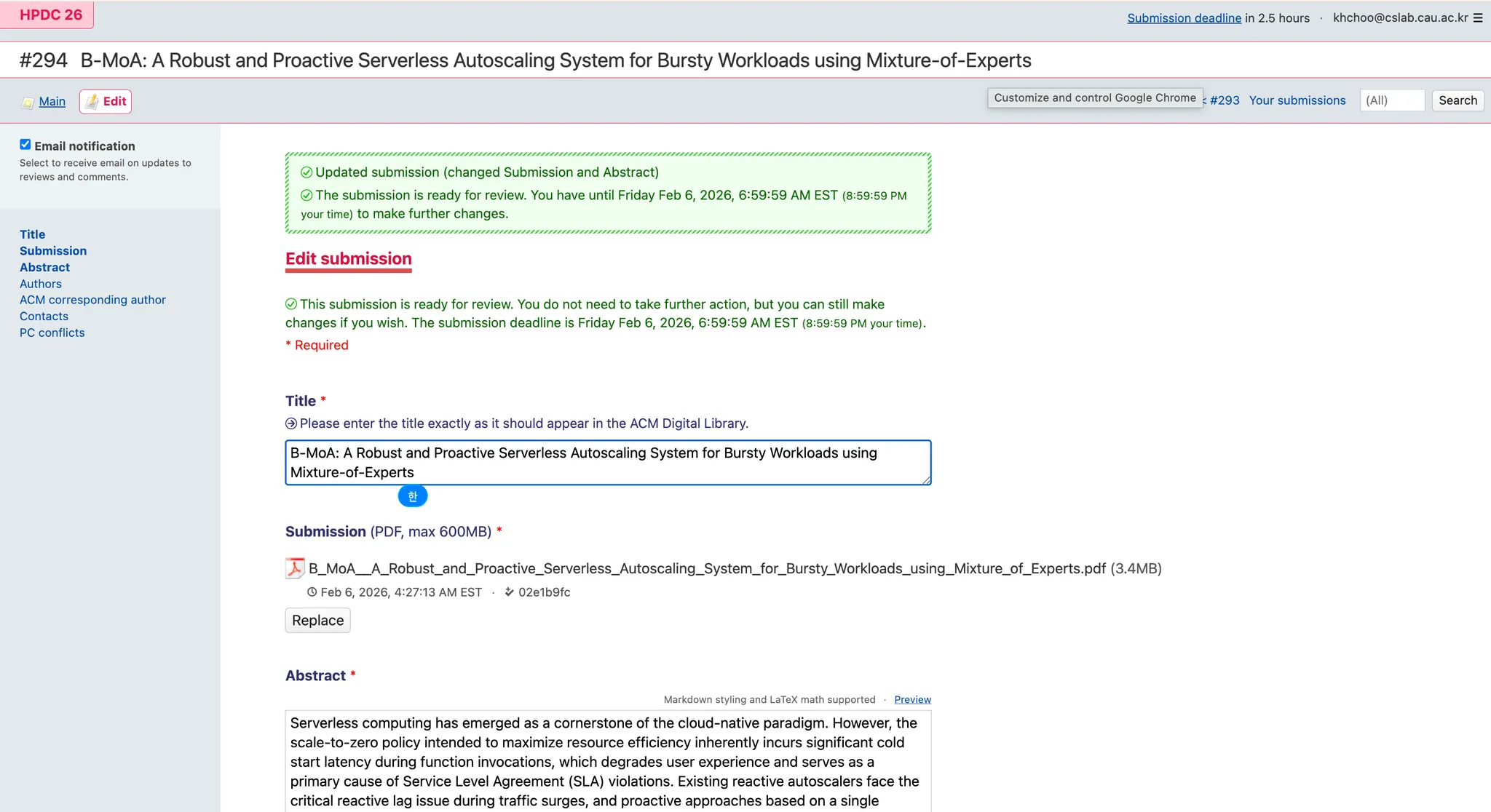 2시간 30분 남기고 HPDC 학회에 논문 제출 성공