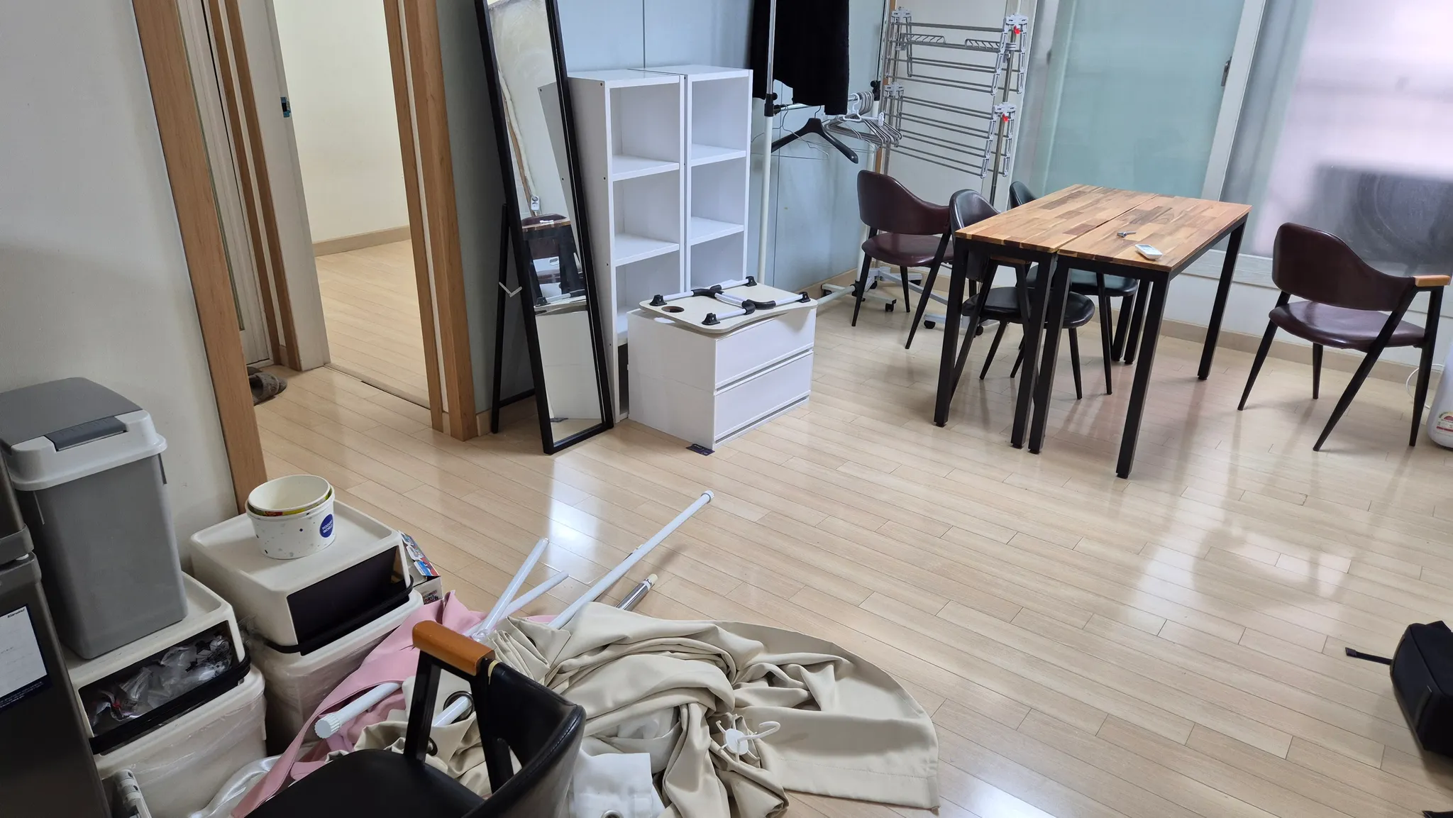 정리 중인 셰어하우스 거실