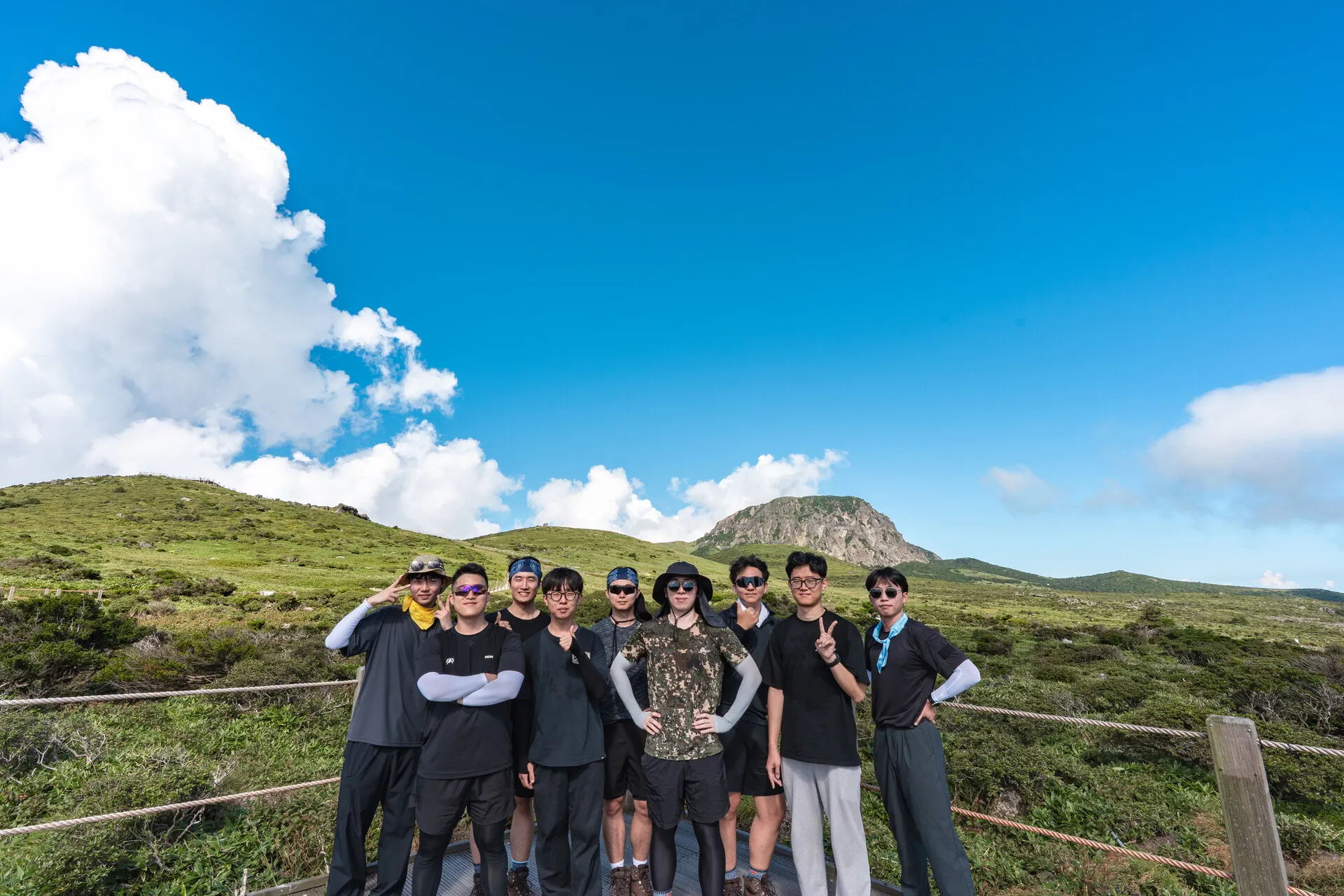 한라산에서 단체 사진