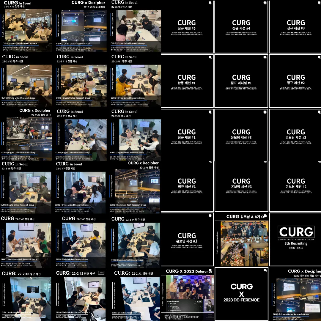 CURG 7기분들께서 적극적으로 학회 활동을 해주셔서 CURG가 크립토 윈터에서 버틸 수 있었고 그래서 지금 유능하고 열정 있는 CURG 8기 & 9기분들을 모실 수 있었습니다. 7기분들께 정말 감사하다는 말씀 꼭 전하고 싶습니다 (Thanks to 서현, 창우, 민혁, 정훈, 은지, 민재, 태영