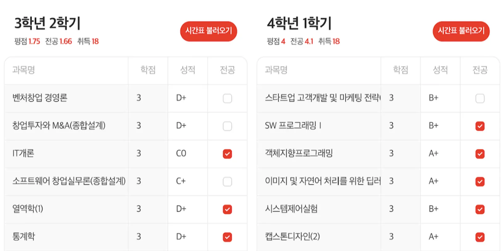 학점) 회사와 병행 : 1.75 vs 퇴사 후 : 4.0